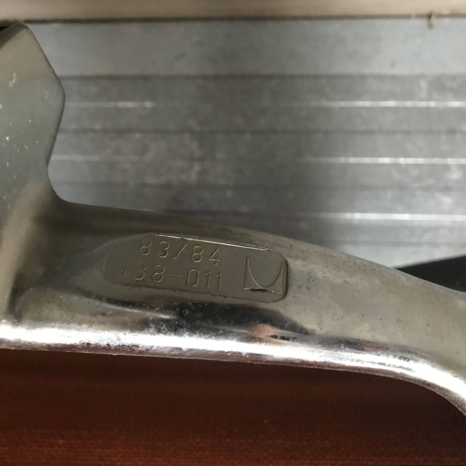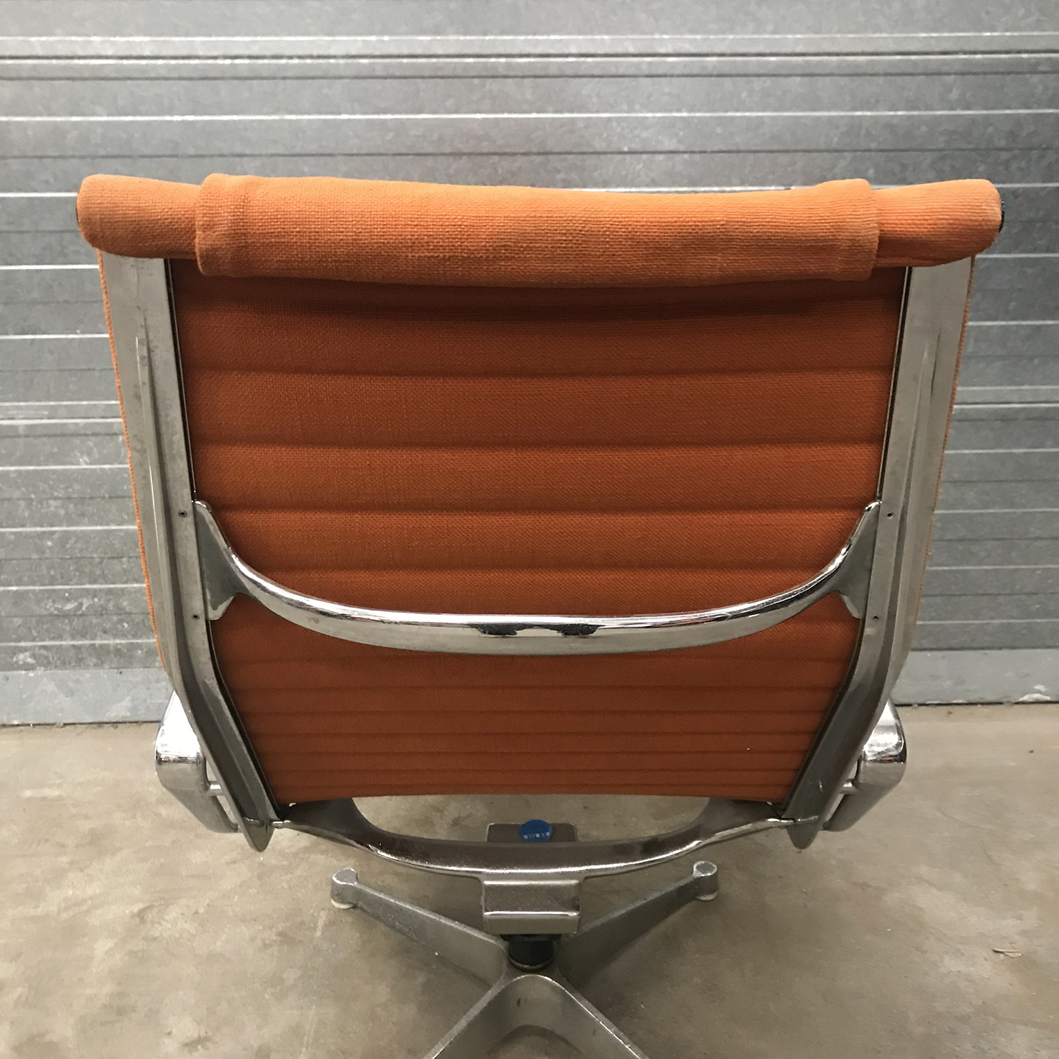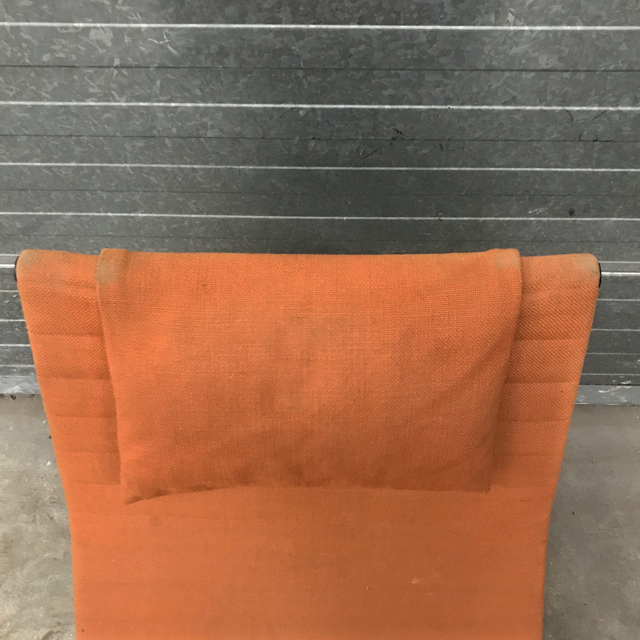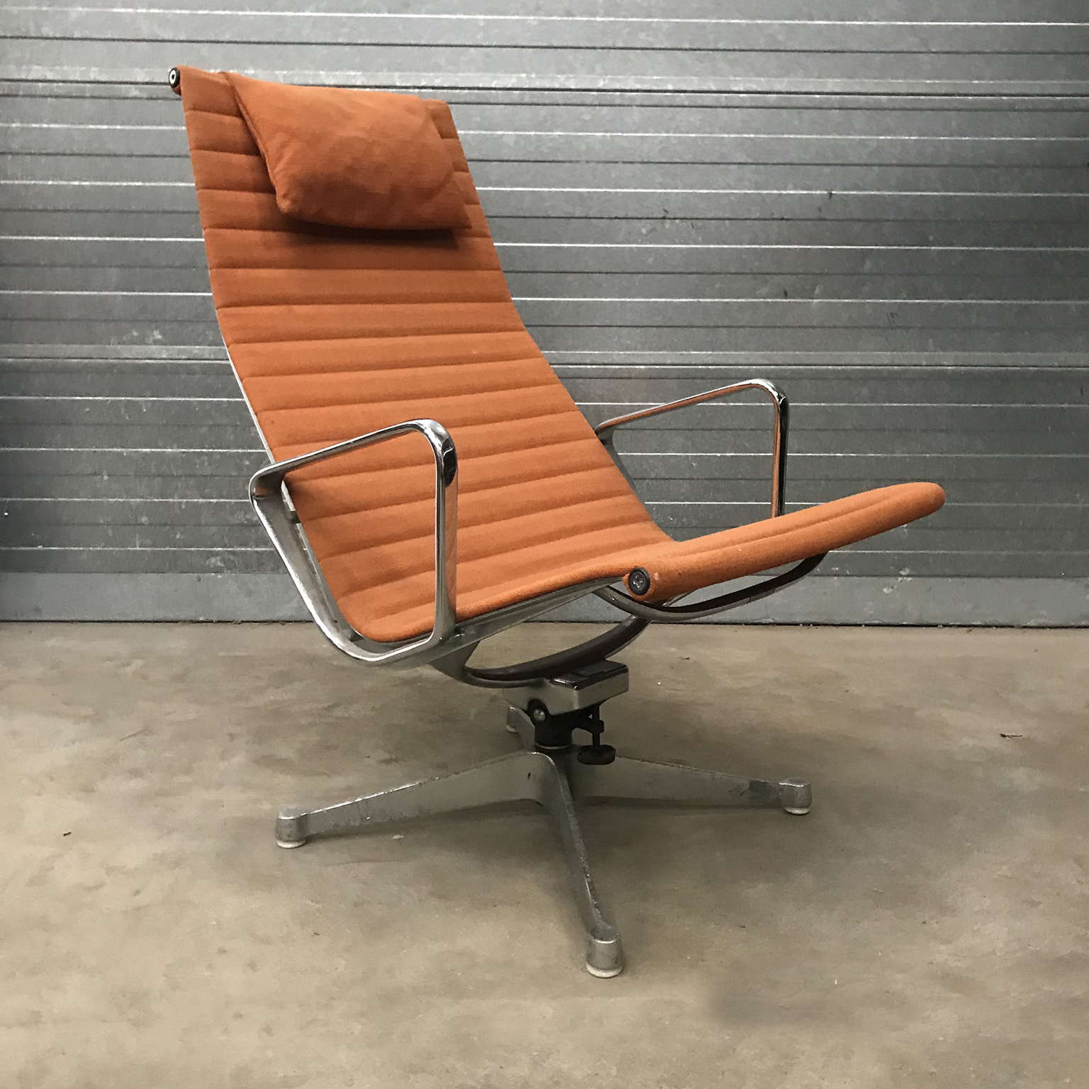 The upholstery is in good condition besides some light stains on the seat and on the upper side, on top. The base has some spots caused by loss of chrome and the base is a bit ‘wobbly’, as most of the earlier, original, first base items.