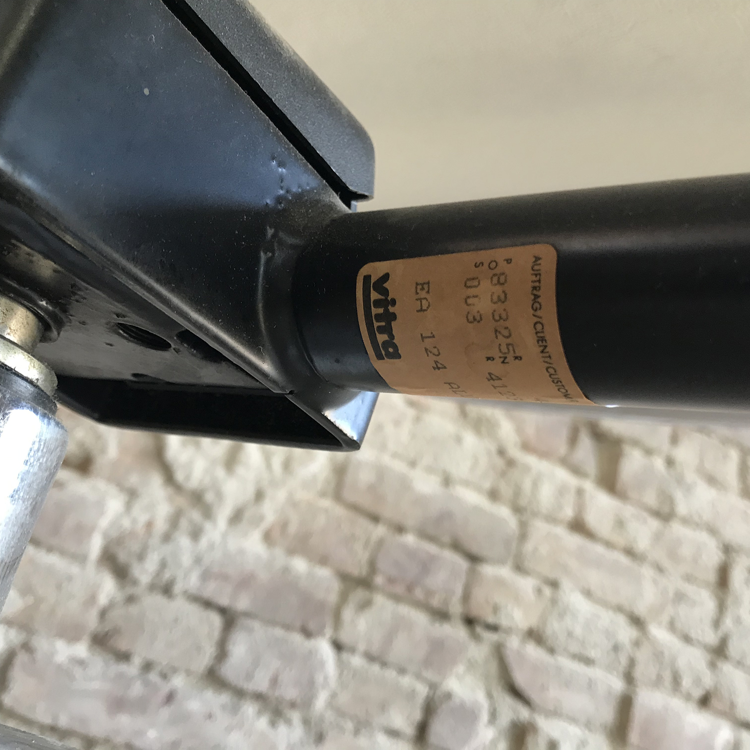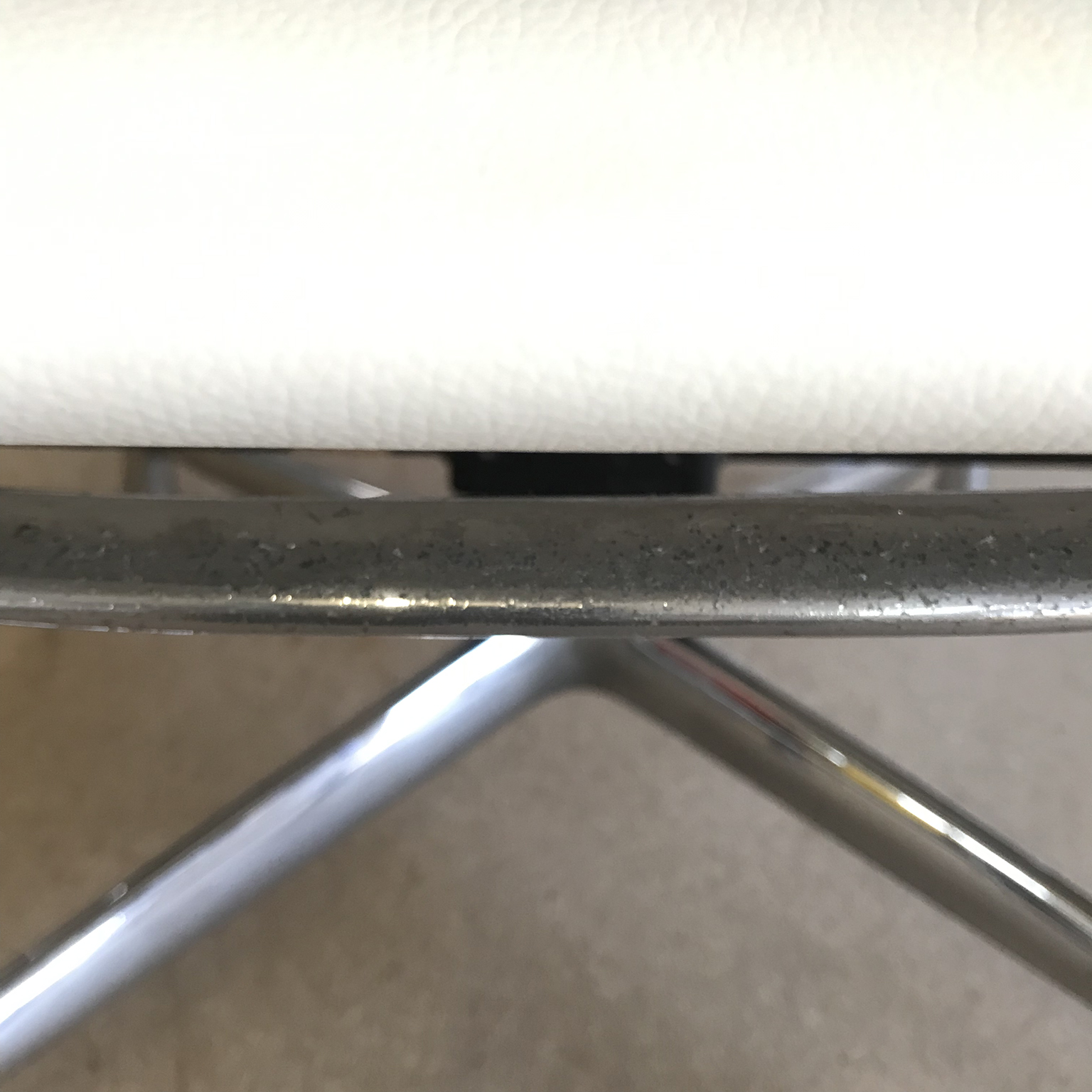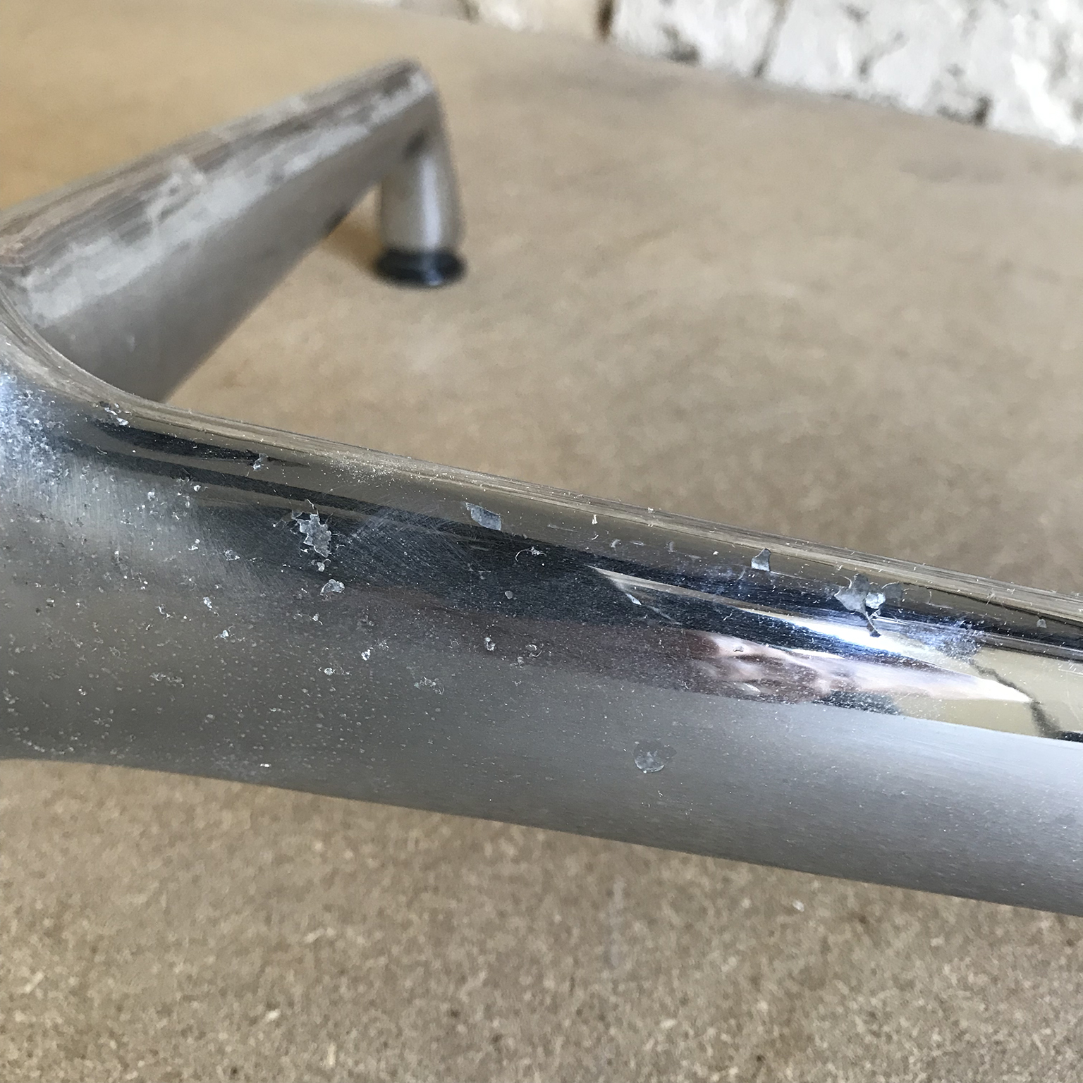 The chair is in very good condition, with only some tiny spots on the bar under the seat and some tiny spots on one of the legs (see picture #14 and #15)
