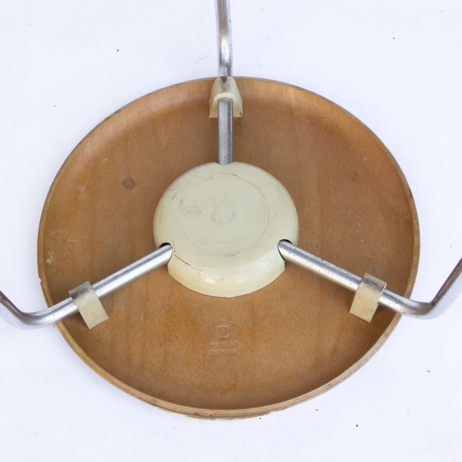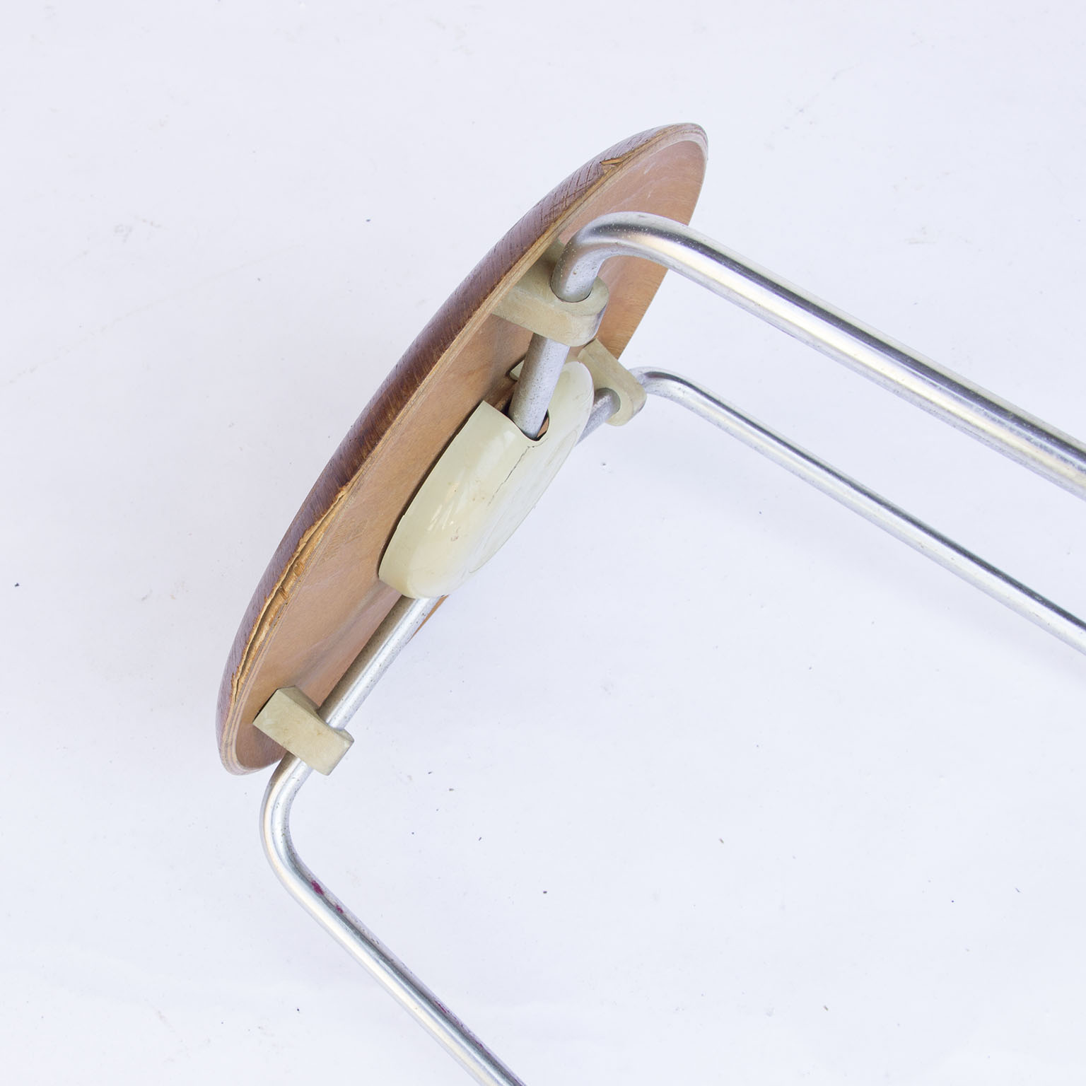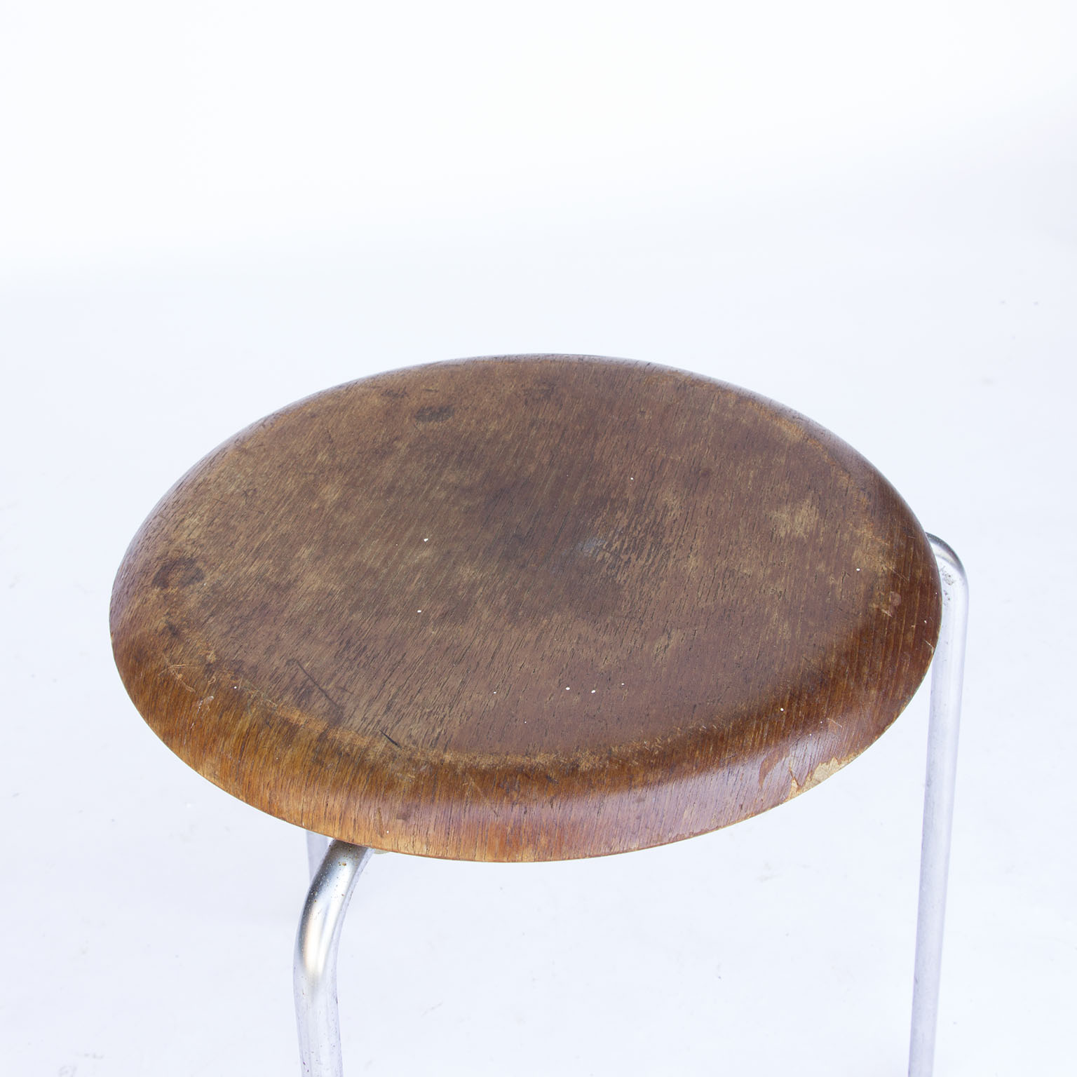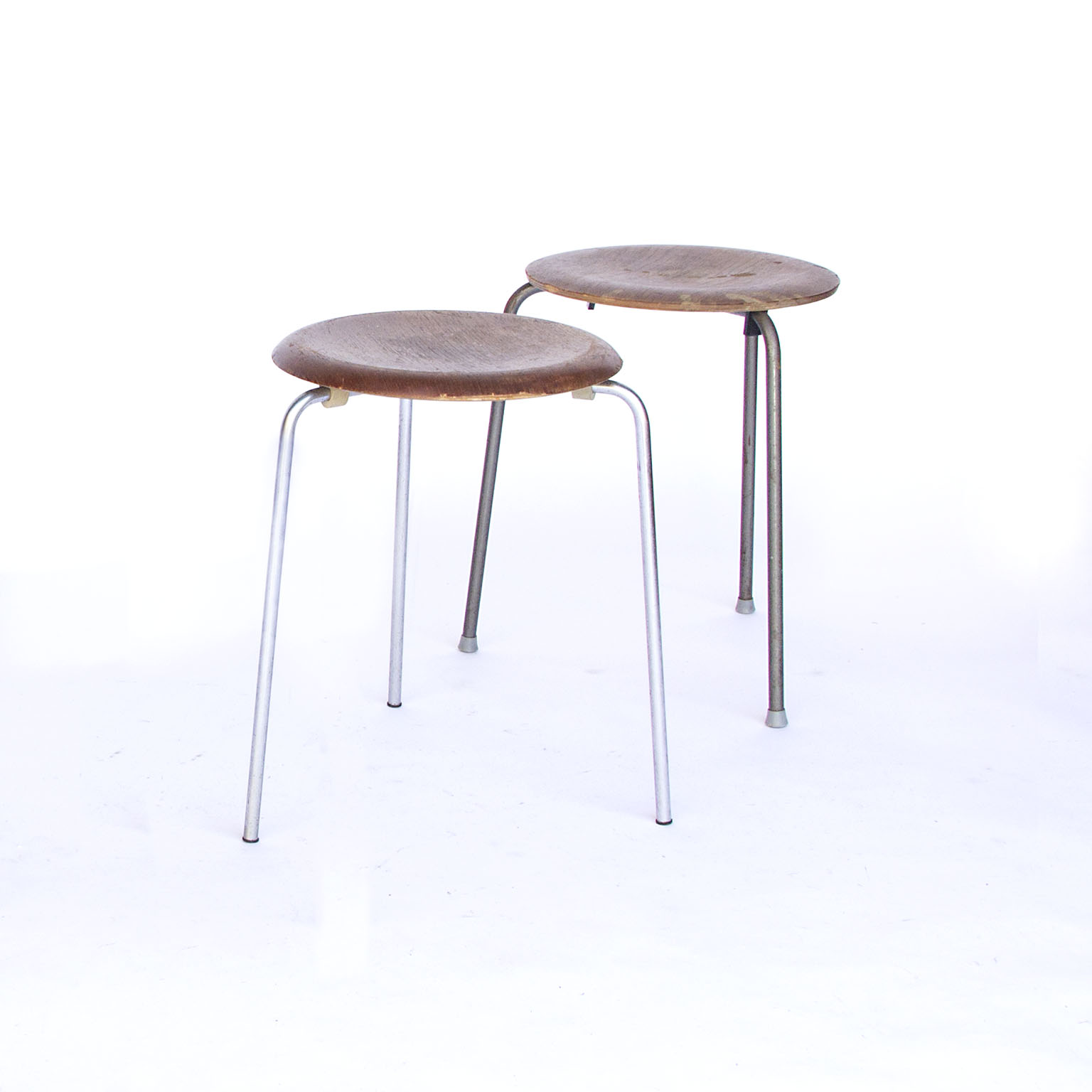 Original vintage low stools in wood by Arne Jacobsen in chrome, not in production anymore.