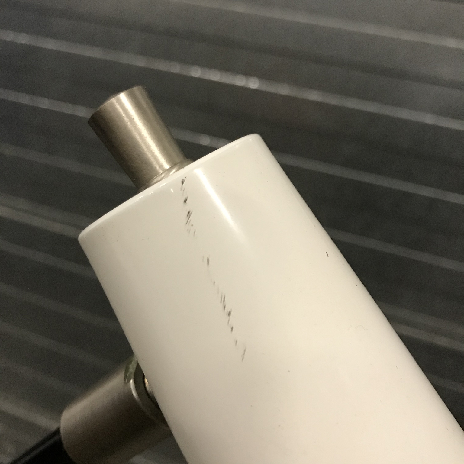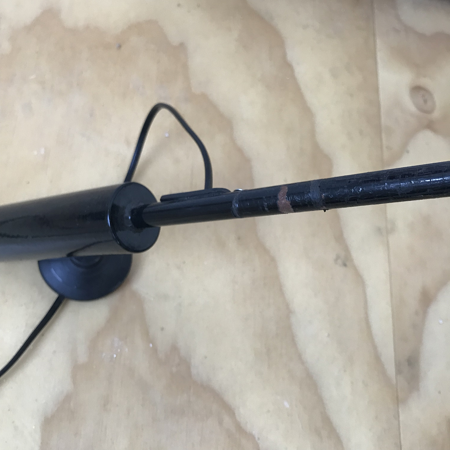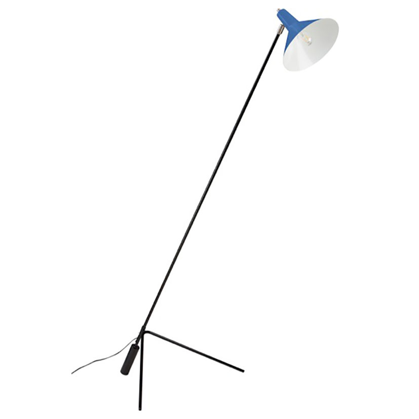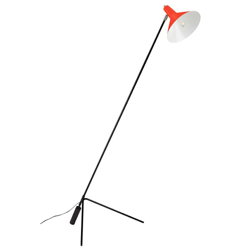 Adjustable Floor lamp with white shade and black base with unique possibilities of changing position and form. The shade can also be positioned in other angles. The lamp shows some traces of light wear, like some spots with some loss of black paint of the base.  Cable 2 meter.