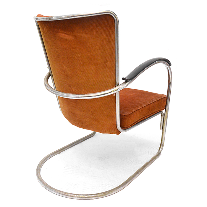Vintage chair in polished chrome with black armrests, original by the original producer. More expensive than a new one.