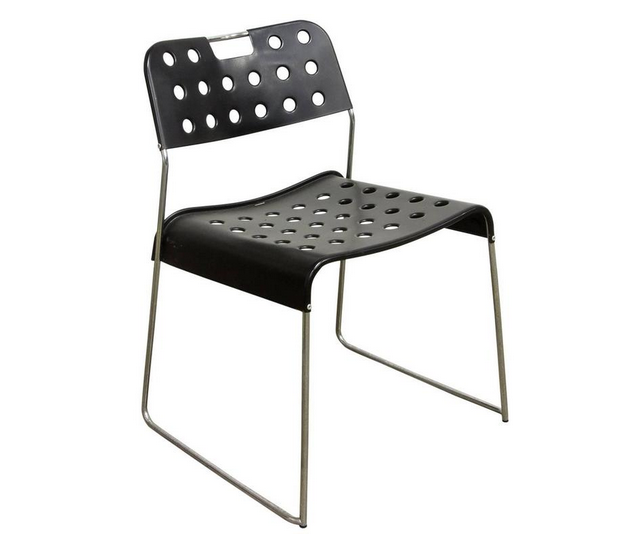 Good original sleek Rodney Kinsman for Bieffelplast Omstak stacking chair in rare black version. Very comfortable with curved angled back.